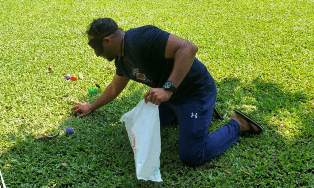 Blind Retriever is a team-building game where one partner is blindfolded and guided by the other to retrieve an object or navigate a course using verbal instructions.
