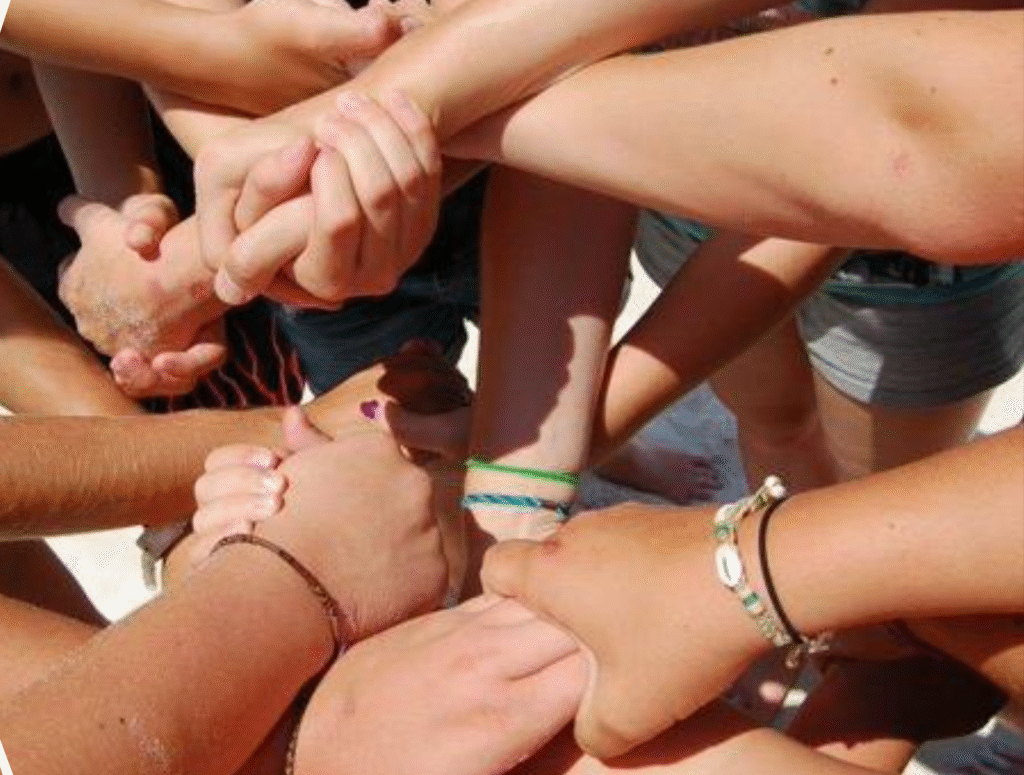 Human Knot is a team-building activity where participants stand in a circle, reach across to hold hands with two different people, and work together to untangle into a single circle without letting go.